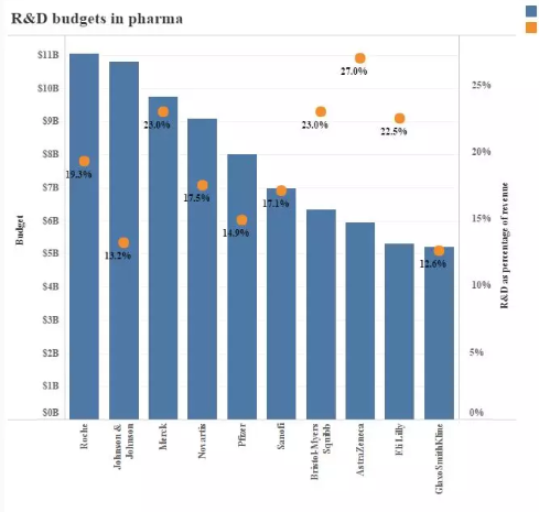 此前安永曾發(fā)布報告指出,2018年全球醫(yī)藥市場規(guī)模約為1.25萬億美元,而這當(dāng)中研發(fā)投入大型制藥公司依然是主力軍。這一整年中,銷售額最高的15家制藥公司對新藥研發(fā)的投入總計達(dá)到了1000億美元。這一高...