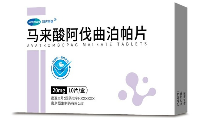 濟(jì)民可信化藥4類口服固體制劑產(chǎn)品-馬來(lái)酸阿伐曲泊帕片(20mg),已提交注冊(cè)并獲國(guó)家藥品監(jiān)督管理局藥品審評(píng)中心(CDE)受理。...