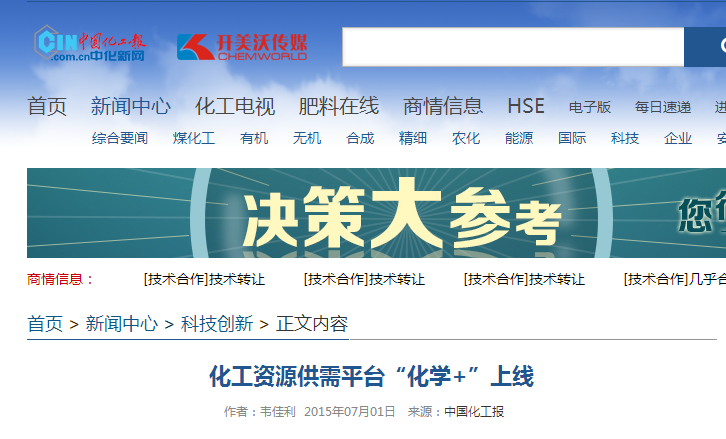 2015年8月3日,包括中國新聞網(wǎng)、光明網(wǎng)、央廣網(wǎng)、CCTV央視網(wǎng)聯(lián)盟 、中國化工報(bào)、搜狐網(wǎng)、財(cái)經(jīng)_中華網(wǎng)、企業(yè)_國際在線、生活消費(fèi)_中國網(wǎng)、新浪遼寧頻道、東北新聞網(wǎng)、鳳凰網(wǎng)_寧波頻道、網(wǎng)易河北等多家...