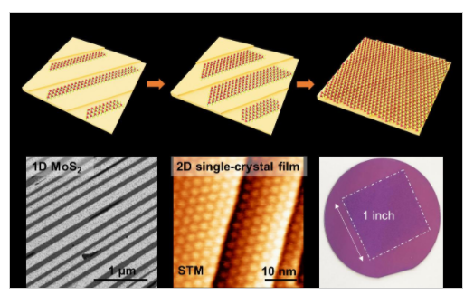 近日,北京大學(xué)張艷鋒教授課題組基于基底臺(tái)階邊緣誘導(dǎo)取向和晶格匹配誘導(dǎo)外延生長兩種機(jī)制的協(xié)同作用,在具有高密勒指數(shù)、Au(111)單晶的近鄰面上,實(shí)現(xiàn)了單一取向排列、單層MoS2條帶的控制生長,通過完美...