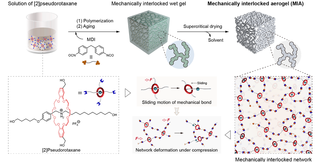 近期,上海交通大學(xué)顏徐州教授團(tuán)隊(duì)在化學(xué)綜合性期刊Journal of the American Chemical Society上發(fā)表了題為“具有稠密輪烷骨架結(jié)構(gòu)的機(jī)械互鎖聚合物氣凝膠(Mechan...