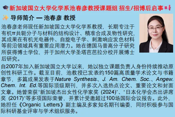 新加坡南洋理工大學(xué)化學(xué)系邵慧玲課題組招聘博士后、博士生、研究助理、本科交流生...
