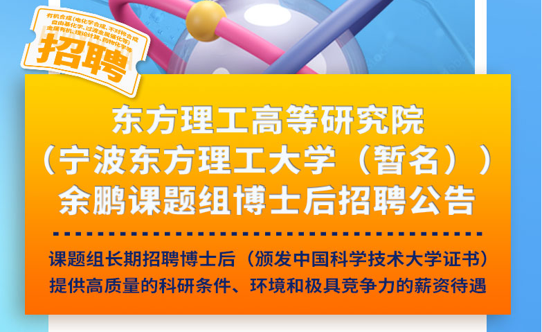 【招聘】年薪45-60萬(wàn)!寧波東方理工大學(xué)(暫名)余鵬課題組誠(chéng)招有機(jī)化學(xué)博士后、科研助理