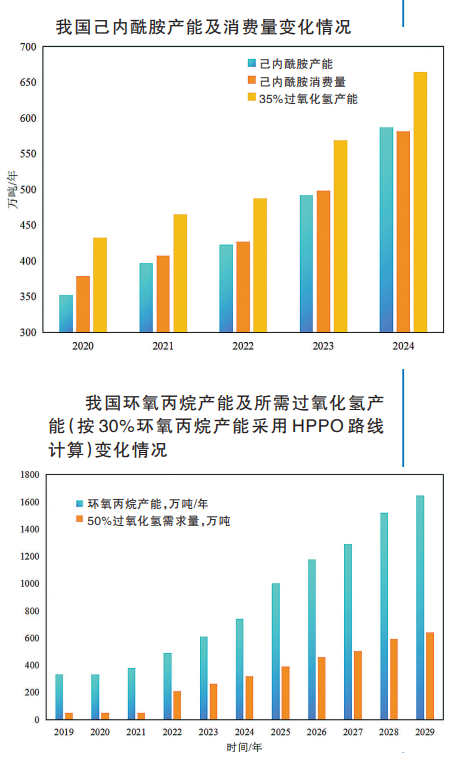 2023年,兩套12萬噸/年過氧化氫工業(yè)裝置在湖南石化順利開車,另有6套裝置正在設(shè)計(jì)或建設(shè)中,為下游化工產(chǎn)品提供原料保障。