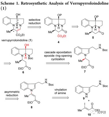 Verrupyrroloindoline(1)逆合成分析如下(Scheme 1):