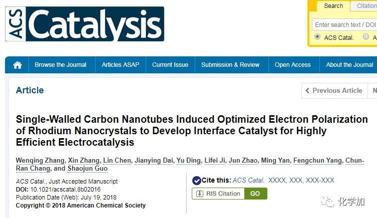 和其它碳納米材料相比,單壁碳納米管(SWNTs)在費米能級處具有約為0.7 eV的帶隙(圖1),大于多壁碳納米管(MWCNTs, 0.4 eV)和石墨烯(G, 0 eV)。較大的帶隙使其成為一種良好的電子受體,其可以接受諸如離子液體,氧化石墨烯和不同電性有機小分子上的電子。根據(jù)不同碳納米材料之間帶隙的差異,作者選取銠(Rh)作為金屬組分,并在炭黑(C),石墨烯,多壁碳納米管和單壁碳納米管上分別負(fù)載了尺寸約為2 nm的Rh納米晶。