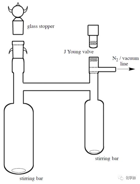 圖4. 文中用于合成簇合物3的特制的H型玻璃反應器。