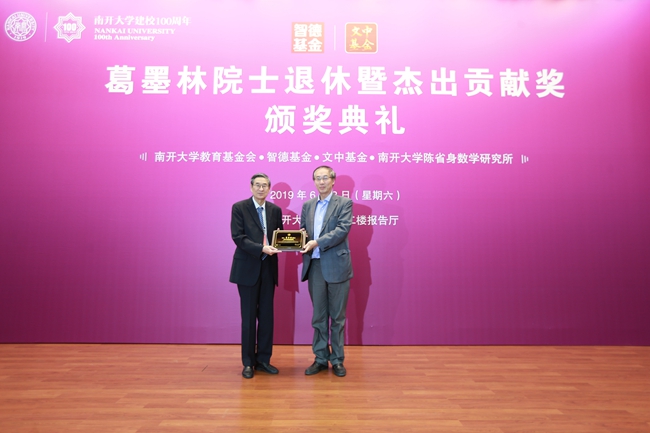 文中基金:在2018年新生開學(xué)典禮上,南開大學(xué)1979級數(shù)學(xué)系校友張文中捐資1億元支持學(xué)校發(fā)展建設(shè)。其中2000萬元用于建設(shè)南開大學(xué)-牛津大學(xué)國際聯(lián)合研究院,8000萬元設(shè)立文中基金,用于理科圖書館的修繕與南開大學(xué)數(shù)學(xué)相關(guān)學(xué)科師資建設(shè)、人才引進(jìn)、學(xué)科發(fā)展等。為表彰葛墨林院士為南開大學(xué)陳省身數(shù)學(xué)所作出的突出貢獻(xiàn),文中基金管理委員會決定授予葛墨林院士文中杰出貢獻(xiàn)獎,一次性獎勵50萬元。