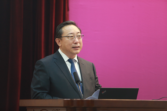 曹雪濤代表南開大學(xué)對葛墨林院士表示敬意和祝賀,向各位專家、來賓表示歡迎和感謝,對張文中校友、周海冰校友反哺母校的義舉表示感謝。曹雪濤說,葛墨林院士是著名的理論物理學(xué)家,在南開大學(xué)從事研究和教學(xué)工作30多年來,始終秉承著對學(xué)術(shù)研究與科學(xué)事業(yè)的無限熱忱,努力推動基礎(chǔ)理論學(xué)科的發(fā)展。他高度關(guān)注并積極對接國家戰(zhàn)略需求,在教學(xué)科研、人才培養(yǎng)及促進(jìn)學(xué)術(shù)交流等方面取得了卓越成就,為南開辦學(xué)實(shí)力的提升作出了突出貢獻(xiàn)。今天,我們頒發(fā)杰出貢獻(xiàn)獎,就是為了隆重表彰和嘉獎南開園中以葛先生為代表的這些愛國奉獻(xiàn)、求真敬業(yè)、為南開發(fā)展作出突出貢獻(xiàn)的專家學(xué)者。于獲獎?wù)叨?,這代表了榮譽(yù)與肯定,于廣大教師乃至全體南開人而言,則意味著表率和引領(lǐng),因此,葛墨林先生作為獎項(xiàng)的首屆獲獎?wù)弋?dāng)之無愧。特別感謝張文中先生和周海冰先生兩位優(yōu)秀校友,捐資設(shè)立“文中基金”“智德基金”,為南開助力學(xué)術(shù)、延攬人才、獎掖后學(xué)。正是在葛先生等一大批南開之師和張文中、周海冰等各界校友的共同努力下,才成就了南開百年之基業(yè)和今日之輝煌。今年是南開大學(xué)建校100周年,也是全體南開人繼往開來邁入新時代新百年的奮進(jìn)之年,更是全校上下凝心聚力建設(shè)“南開品格、中國特色、世界一流”大學(xué)的關(guān)鍵之年。唯有大師,方為大學(xué)。今天,我們大力推進(jìn)“雙一流”建設(shè)、積極實(shí)施“4211卓越南開行動計(jì)劃”,在這過程中,我們把人才工作放在了更加突出和優(yōu)先的位置,人才強(qiáng)校作為第一戰(zhàn)略、核心戰(zhàn)略體現(xiàn)在辦學(xué)治校的各方面。相信以文中、智德杰出貢獻(xiàn)獎為代表的獎勵項(xiàng)目的設(shè)立,將有效助力學(xué)校人才隊(duì)伍建設(shè),帶動南開綜合實(shí)力提升。我們堅(jiān)信,新百年、新南開將呈現(xiàn)以新氣象、新作為,一個更加開放自信的南開正闊步走來!懇請各位院士專家對南開人才隊(duì)伍建設(shè)和學(xué)校事業(yè)發(fā)展給予更有力的指導(dǎo)與支持,也歡迎各位為南開舉薦更多優(yōu)秀人才。誠邀各位再度蒞臨南開參加百年校慶慶典,與我們共話新百年、新南開、新發(fā)展。