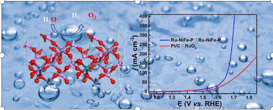 在過去幾年的研究中,過渡金屬磷化物(TMPs)由于其低廉的價(jià)格和較好的催化性質(zhì)成為一類非常有潛力的電解水催化劑。但是它固有的一些缺點(diǎn)限制了該類催化劑的進(jìn)一步應(yīng)用。例如催化劑表面的活性位點(diǎn)不夠豐富,每個(gè)活性位的活性有限以及有待提高的導(dǎo)電性,這也是很多催化劑共有的缺陷。而釕作為一種d軌道電子豐富的鉑族元素,價(jià)格僅為鉑的4%。因此,該工作將微量的釕摻雜到偏磷酸鎳鐵中用以調(diào)控其表面電子密度,電化學(xué)測試表明該方法極大地提高了該材料的催化性能。DFT計(jì)算表明,偏磷酸鎳鐵表面P為吸附氫的位點(diǎn),而釕摻雜后,Ru位點(diǎn)具有更小的|?GH*|,不僅降低了原P位的|?GH*|,同時(shí)還極大提高了材料的導(dǎo)電性,從而使該材料具有優(yōu)異的催化性能。這種通過微量釕摻雜調(diào)控電子密度的策略可以為將來設(shè)計(jì)新的高效催化劑提供指導(dǎo)。