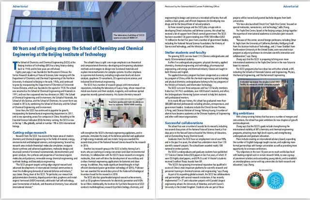 化學(xué)與化工學(xué)院的前身可追溯到1940年創(chuàng)立的延安自然科學(xué)院化工系和1920年建校的中法大學(xué)化學(xué)系。經(jīng)過(guò)學(xué)科的多次拆分和重組,建立了目前的化學(xué)與化工學(xué)院。學(xué)院現(xiàn)有專(zhuān)任教師127人;長(zhǎng)江學(xué)者獎(jiǎng)勵(lì)計(jì)劃特聘教授4人,國(guó)家杰出青年科學(xué)基金獲得者5人,國(guó)家“萬(wàn)人計(jì)劃”科技創(chuàng)新領(lǐng)軍人才1人,百千萬(wàn)工程國(guó)家級(jí)人選3人,國(guó)家優(yōu)秀青年基金獲得者等四青人才10人,教育部跨/新世紀(jì)優(yōu)秀人才9人,教育部長(zhǎng)江學(xué)者創(chuàng)新團(tuán)隊(duì)1個(gè)。形成了包括杰青/長(zhǎng)江、優(yōu)青等在內(nèi)的一支力量十足的高水平教學(xué)、科師資隊(duì)伍。學(xué)院現(xiàn)有化學(xué)和化學(xué)工程與技術(shù)兩個(gè)一級(jí)學(xué)科?;瘜W(xué)學(xué)科是我?!疤厣砜啤睂W(xué)科群中重點(diǎn)建設(shè)的學(xué)科之一,ESI國(guó)際學(xué)科最新排名為全球第199位,進(jìn)入ESI全球?qū)W科排名前2‰(1.6 ‰ )?;W(xué)科在QS國(guó)際排名位列201-250名, 全國(guó)第四輪學(xué)科評(píng)估A類(lèi)學(xué)科(并列第8)?;瘜W(xué)與化工學(xué)院的學(xué)科研究一直秉承學(xué)校的延安根歷史,致力于面向國(guó)防和國(guó)家重大需求,開(kāi)展化學(xué)/化工的前沿原創(chuàng)性及產(chǎn)學(xué)研結(jié)合研究。