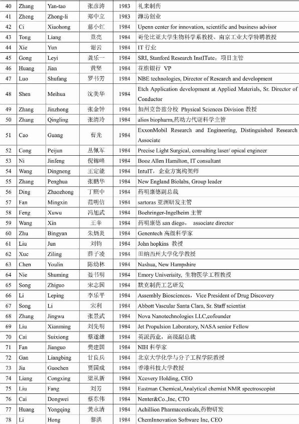 微信公眾號“生物制藥小編”統(tǒng)計了136名項目畢業(yè)生去向,他們大多都成為了學術(shù)界和業(yè)界領(lǐng)軍人物和中堅力量。中美合作化學研究生項目雖然僅僅只持續(xù)五年,培養(yǎng)了一批具有國際競爭力的一流科學家和制藥行業(yè)企業(yè)家。這些在美國工作多年,積累了先進研究方法和產(chǎn)業(yè)經(jīng)驗的專業(yè)人士回國后,極大助力我國醫(yī)藥研發(fā)行業(yè)的發(fā)展。