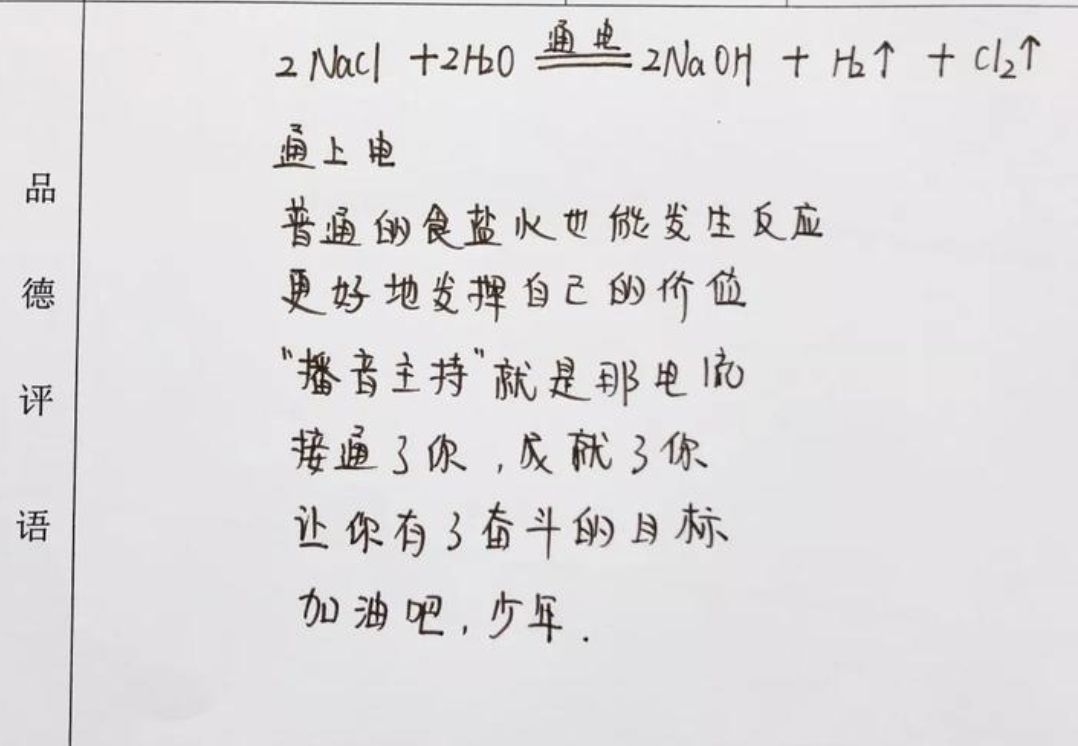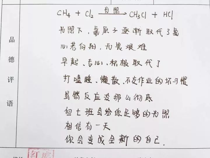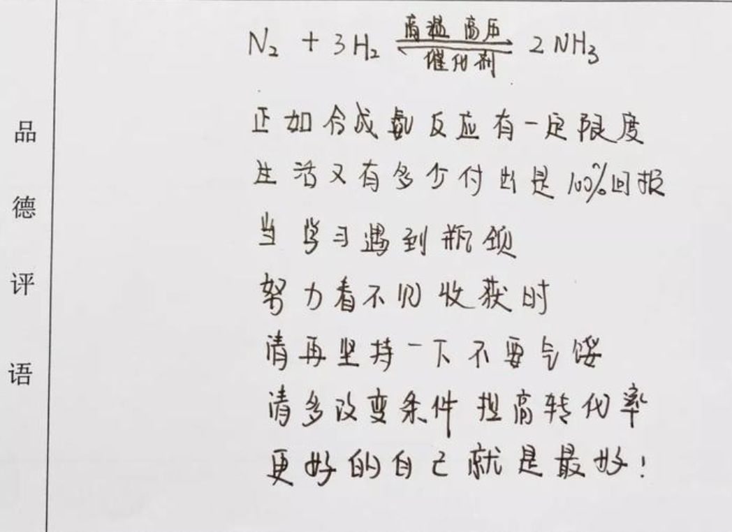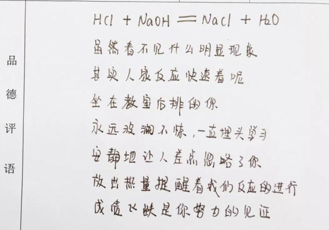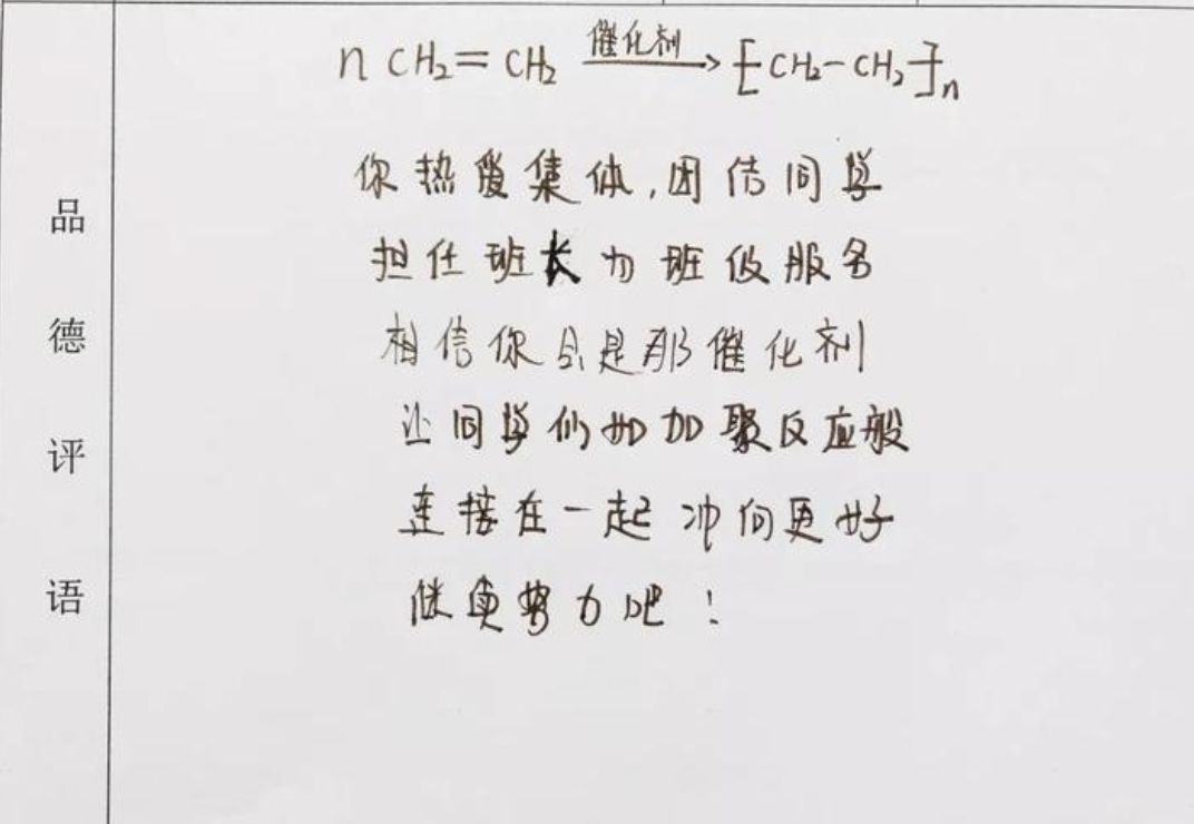 原標題:《就問看不看得懂!浙江一高中老師評語用上化學方程式》