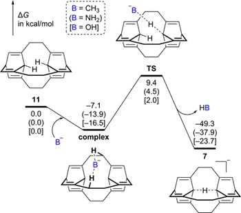 圖4. 由烴類(lèi)前體11轉(zhuǎn)化為碳負(fù)離子7的勢(shì)能面。