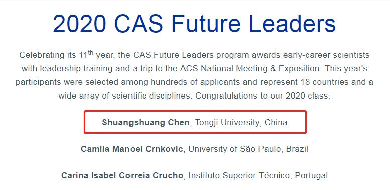 據(jù)悉,“CAS未來(lái)領(lǐng)袖”計(jì)劃由美國(guó)化學(xué)會(huì)(American Chemical Society)旗下分支機(jī)構(gòu)美國(guó)化學(xué)文摘社(簡(jiǎn)稱(chēng)CAS)設(shè)立,旨在表彰獲獎(jiǎng)?wù)呓艹龅膶W(xué)術(shù)成就與研究的科學(xué)價(jià)值。該項(xiàng)目為青年科學(xué)家提供重要的科學(xué)、商業(yè)和領(lǐng)導(dǎo)力培訓(xùn)。今年8月,國(guó)際博士學(xué)生和博士后研究人員將應(yīng)邀參觀CAS總部,并參加ACS美國(guó)化學(xué)會(huì)國(guó)際大會(huì)暨展覽會(huì)。今年的獲獎(jiǎng)?wù)呤莵?lái)自18個(gè)國(guó)家的18位青年科學(xué)家,所涉及學(xué)科十分廣泛。