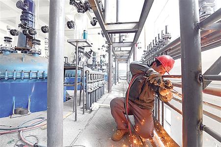 綠色化工園區(qū)內(nèi)廠房工人正加緊施工。