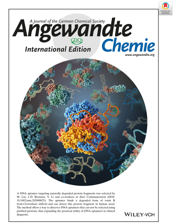 該成果在線發(fā)表于Angewandte Chemie International Edition,并被選為當期熱點文章(hot paper)和封底文章(back cover)。大連理工大學環(huán)境學院為論文第一通訊單位,加拿大McMaster大學生物界面研究所John D. Brennan教授和生物化學和生物醫(yī)學系Yingfu Li教授為文章的共同通訊作者。