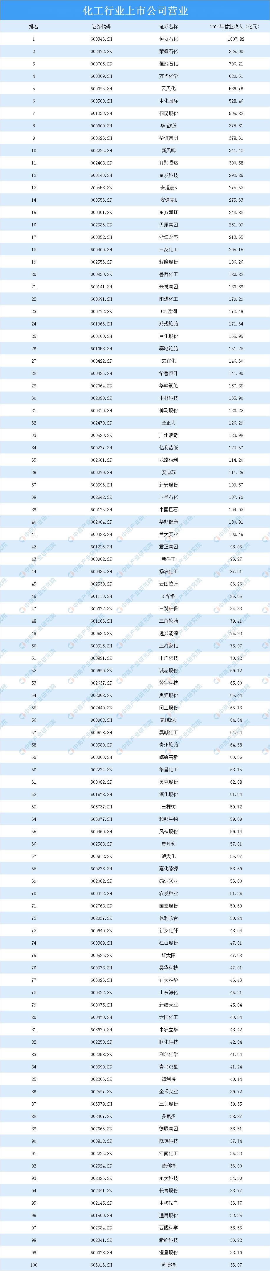 以下為 化工行業(yè)上市公司營業(yè)收入前100名排行: