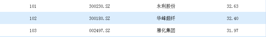 注:8和9為華誼B股和華誼集團,13和14為安道麥A和安道麥B,56和57位氯堿B股和氯堿化工,以上為同一家企業(yè)發(fā)行A、B股。
