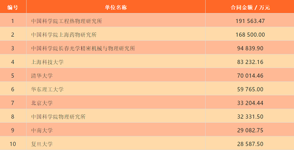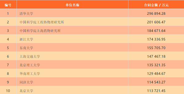 2018年高校院所以技術(shù)轉(zhuǎn)讓(包括轉(zhuǎn)讓、許可、作價投資)、技術(shù)開發(fā)、技術(shù)咨詢、技術(shù)服務(wù)方式轉(zhuǎn)移轉(zhuǎn)化科技成果合同金額前10名