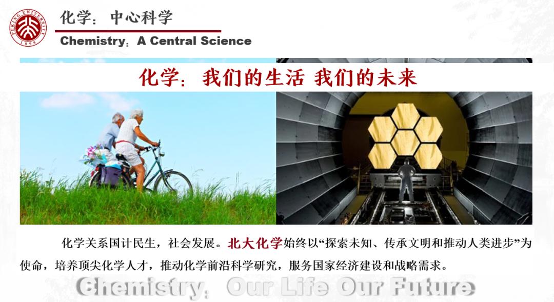 化學(xué)關(guān)系國計民生,社會發(fā)展。北大化學(xué)始終以“探索未知、傳承文明和推動人類進步”為使命,培養(yǎng)頂尖化學(xué)人才,推動化學(xué)前沿科學(xué)研究,服務(wù)國家經(jīng)濟建設(shè)和戰(zhàn)略需求。
