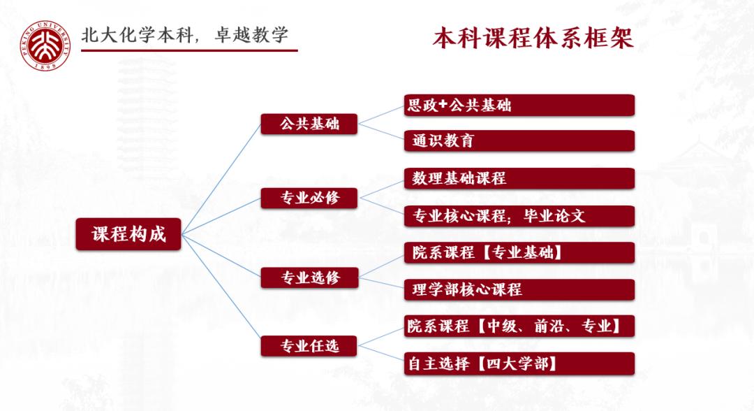 大學(xué)的教育不僅是為了傳授知識,更多的是為了建設(shè)起我們的知識體系,并且塑造我們看待世界的世界觀。在北大化院一年級的本科生接受的是通識教育,除了化學(xué)之外,同樣要學(xué)習(xí)數(shù)學(xué)、物理、計算機等課程,這可以幫助我們建設(shè)更全面更扎實的知識體系。