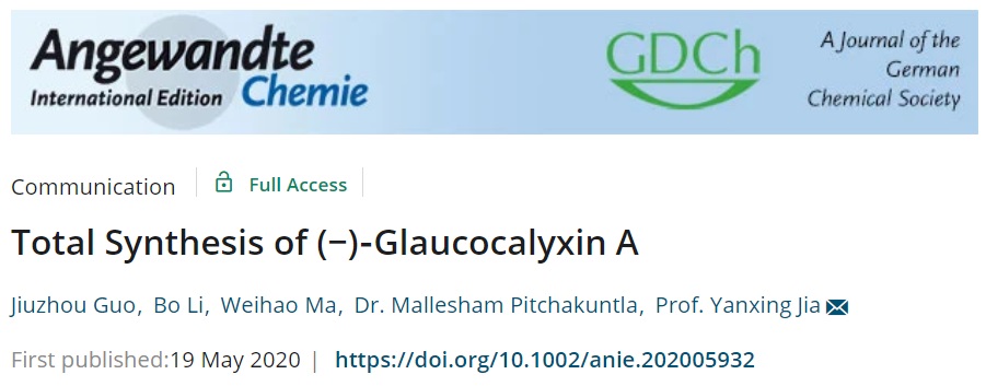 導讀:6月15日,《德國應用化學》(Angew. Chem. Int. Ed.)期刊在線刊登了北京大學藥學院天然藥物及仿生藥物國家重點實驗室賈彥興教授團隊在天然產(chǎn)物全合成領(lǐng)域的最新研究成果:“Total Synthesis of (-)-glaucocalyxin A”。該工作同時被編輯選為Hot Paper。