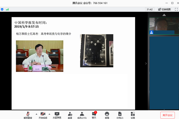 7月6日上午,華南理工大學分子科學與工程學院(華南軟物質科學與技術高等研究院)舉辦的“科學與人生:老一輩科學家的大講堂”第三場,邀請到高分子化學家、中國科學院院士楊萬泰教授,給大家講述“高分子化學風雨四十年”的科研故事,分子(軟物質)、生醫(yī)、微電子、吳賢銘、機械、自動化、土木等多個學院的近300位師生云上聽會。