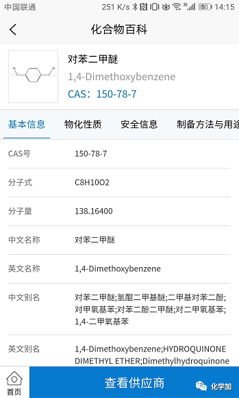 3、全球三大化合物數(shù)據(jù)庫之一,于2018年11月獲得國家級“大數(shù)據(jù)科技傳播獎-優(yōu)秀團體創(chuàng)新獎”。與化學加網(wǎng)、化學加微信小程序同步更新,數(shù)據(jù)精準,且已關聯(lián)上各產(chǎn)品主流供應商。化學加,匯聚產(chǎn)業(yè)資源,為你加分!