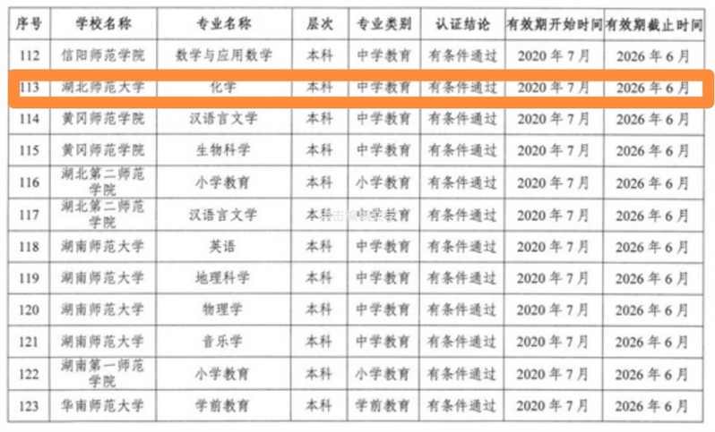 此次公布的名單中,東北師范大學、華中師范大學等4所部屬師范大學的4個專業(yè)通過師范類第三級專業(yè)認證,北京師范大學等78所高校的155個專業(yè)通過師范類第二級專業(yè)認證,所有專業(yè)認證結論為“有條件通過”,結論有效期為20207月至20266月。據統計,通過第二級專業(yè)認證的化學專業(yè)共10個。