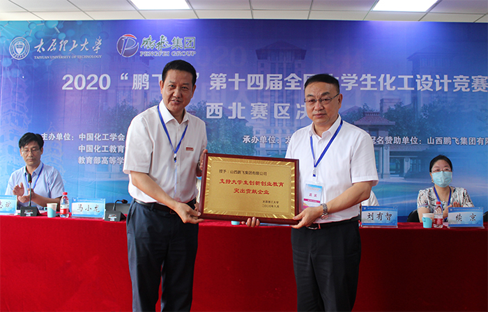 山西鵬飛集團有限公司為本次大賽提供了獨家贊助。為表彰鵬飛集團長期以來對我校人才培養(yǎng)和創(chuàng)新創(chuàng)業(yè)教育的支持,進一步促進校企合作,學(xué)校授予鵬飛集團有限公司“支持大學(xué)生創(chuàng)新創(chuàng)業(yè)教育突出貢獻企業(yè)”榮譽稱號,劉潤祥在開幕式上為鵬飛集團授牌。