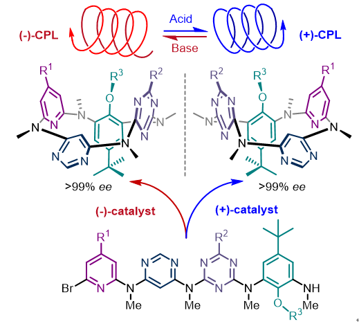 總之,研究發(fā)展了一種鈀催化的高對(duì)映選擇性的合成ABCD型固有手性大環(huán)化合物的新方法,實(shí)現(xiàn)了新型固有手性大環(huán)分子單一鏡像異構(gòu)體的高效制備。所合成的固有手性大環(huán)分子具有獨(dú)特的、受pH響應(yīng)的圓偏振發(fā)光性能。研究為固有手性分子的催化不對(duì)稱合成和開(kāi)拓其在化學(xué)、醫(yī)藥和高技術(shù)材料的應(yīng)用提供了新的思路。