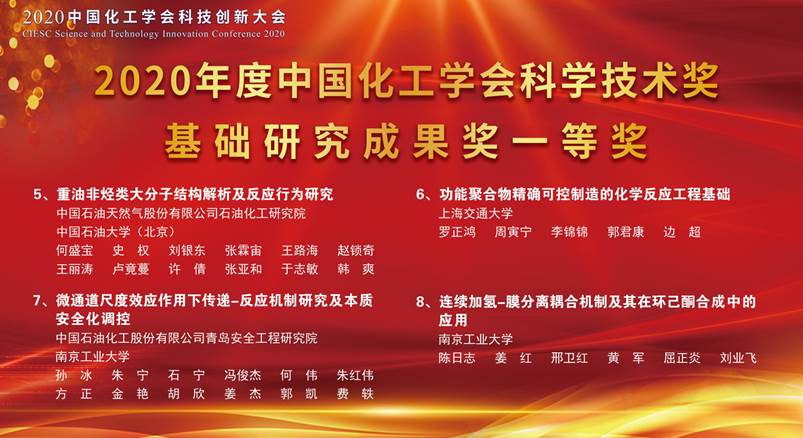 2020年度中國(guó)化工學(xué)會(huì)科學(xué)技術(shù)獎(jiǎng)獲獎(jiǎng)名單