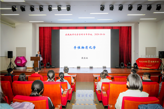 儀式后,周其林院士以“手性物質(zhì)化學”帶來“百年南開化學大講堂”首講。