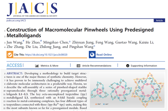 據(jù)悉,近5年來,王平山課題組已在J. Am. Chem. Soc.上發(fā)表6篇高水平論文,其中有三篇被選為封面文章,在超大單分子精準(zhǔn)組裝領(lǐng)域創(chuàng)建了獨(dú)特的研究方法,備受關(guān)注。