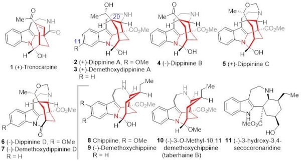 圖一:部分Dippinine-Chippiine類天然產(chǎn)物的結(jié)構(gòu)