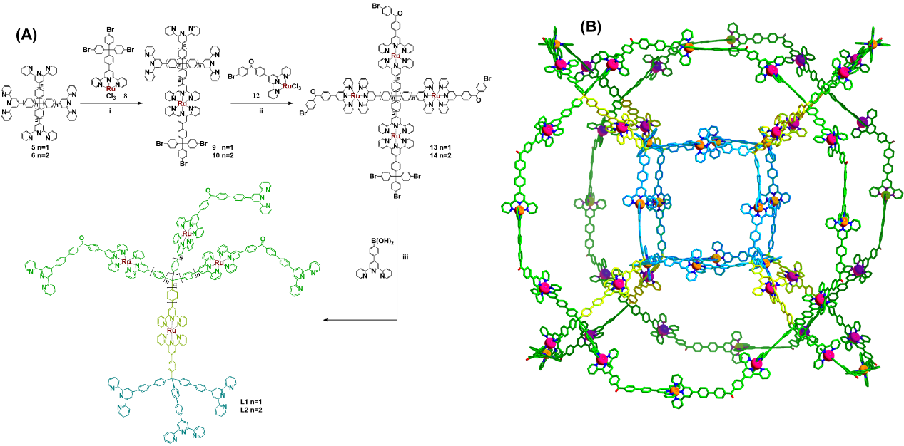 圖2. 金屬有機(jī)配體L1和L2的合成路線(xiàn)及雙層立方體C2結(jié)構(gòu)圖。