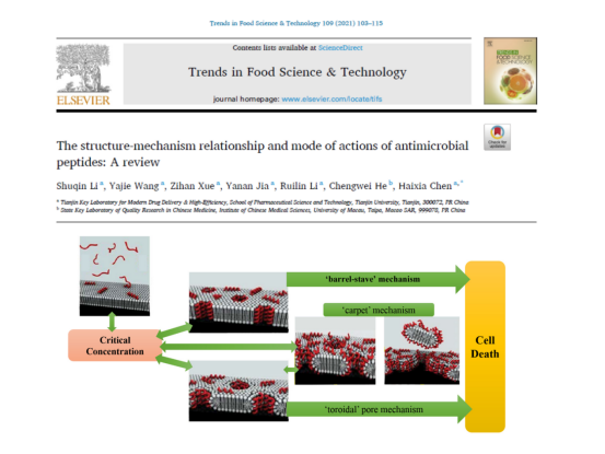 傳統(tǒng)抗生素的易獲取性和過量使用導(dǎo)致了嚴(yán)重的抗生素濫用問題,從而導(dǎo)致全球醫(yī)療保健中的抗生素耐藥危機,不但嚴(yán)重影響人類健康,還威脅農(nóng)業(yè)以及食品安全。但是新抗生素的研發(fā)正遭遇瓶頸期,因此新型抗菌藥物的開發(fā)成為新的研究方向。抗菌肽是自然免疫系統(tǒng)中的重要組成部分,因其與傳統(tǒng)抗生素不同的作用機制而越來越受到研究者的關(guān)注。目前,抗菌肽的作用機制可以分為靶向細(xì)胞膜的作用機制和靶向細(xì)胞內(nèi)靶點的作用機制。機制研究方法包括電鏡分析(SEM,TEM,AFM),膜透性試驗、核磁共振、凝膠阻滯實驗、qRT-PCR等多種技術(shù)方法。