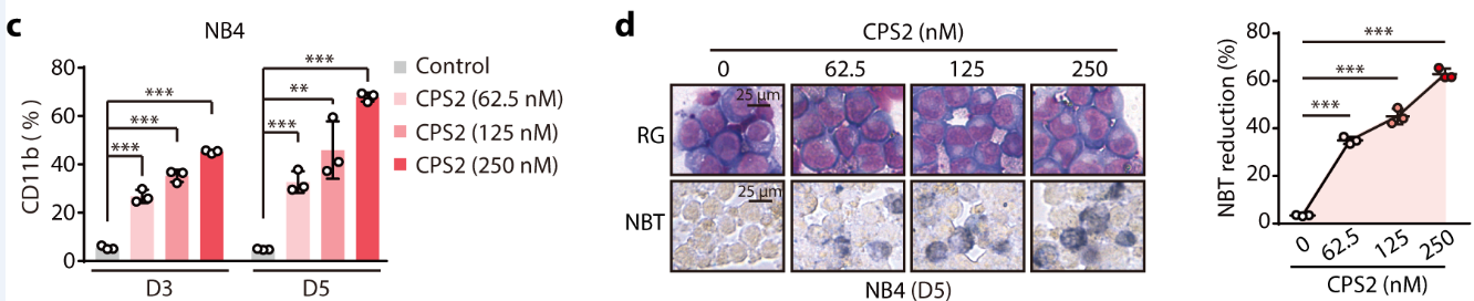 圖6. CPS2處理下,AML細(xì)胞產(chǎn)生明顯分化