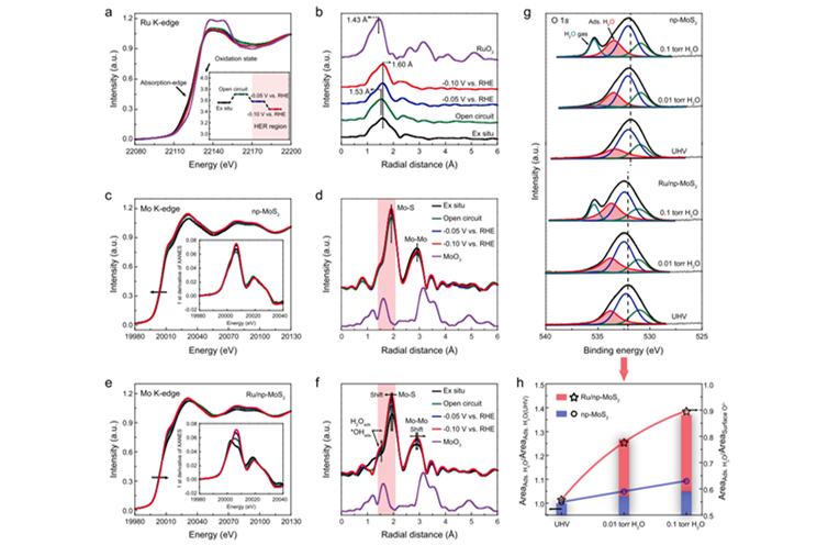 單原子Ru/np-MoS2催化劑的原位機理研究。