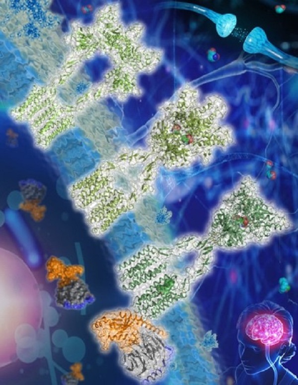 代謝型谷氨酸受體(Metabotropic glutamate receptor, mGlu)屬于C類G蛋白偶聯受體(G protein-coupled receptor, GPCR)家族,是人體內最重要的神經遞質受體之一。目前在人體內共發(fā)現了8種代謝型谷氨酸受體(mGlu1-8),其功能涉及學習、記憶、情緒以及疼痛感知等,是阿爾茲海默癥和精神分裂癥等疾病的治療靶點。然而,迄今尚無靶向這類受體的藥物成功上市,因此其結構與功能研究對精神神經系統疾病的新藥創(chuàng)制具有重要意義。與其它類型的GPCR相比,mGlu等C類GPCR具有獨特的激活機制,受體必須形成同源或異源二聚體才能行使功能。但是,長期以來不同類型二聚化對于受體活性的調控機制和該類受體如何激活G蛋白等細胞內效應蛋白一直不清楚。