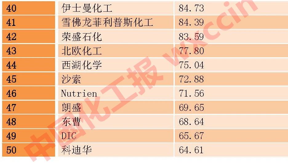 去年的50強(qiáng)中有三家公司今年未能入圍。藝康因?yàn)閯冸x油田化學(xué)業(yè)務(wù);SK Innovation和PTT全球化工都是石化銷售下滑的受害者。