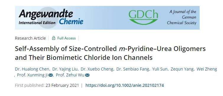 近日,首都醫(yī)科大學(xué)北京腦重大疾病研究院吳澤輝副教授團(tuán)隊在化學(xué)領(lǐng)域國際頂級期刊《Angewandte Chemie International Edition》上發(fā)表題為“Self-Assembly of Size-Controlled m-Pyridine-Urea Oligomers and Their Biomimetic Chloride Ion Channels”的研究論文。研究團(tuán)隊發(fā)現(xiàn),線性間吡啶二脲衍生物通過引入分子內(nèi)六角型氫鍵和分子間氫鍵,可以自身折疊和組裝形成氯離子通道,有望應(yīng)用于氯離子通道相關(guān)疾病的診斷。北京腦重大疾病研究院助理研究員陳華龍和藥學(xué)院副教授劉亞靜為共同第一作者,吳澤輝副教授為通訊作者。