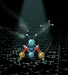 圖1 Ni1Cu2三原子催化劑在乙炔選擇性加氫中動態(tài)結構變化的模型示意圖。其中金色、藍色、紅色、白色、黑色小球分別代表銅、鎳、氧、碳和氫原子。