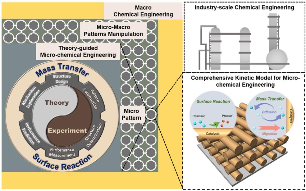 化學(xué)工程,于19世紀(jì)末開始發(fā)展并逐漸影響到工業(yè)生活的方方面面,是基于非線性耦合化學(xué)反應(yīng)的動量、能量和質(zhì)量傳遞的研究,強(qiáng)調(diào)的是諸如攪拌、分離、純化等單元操作的工藝優(yōu)化。與工業(yè)規(guī)模的化學(xué)工程一樣,傳質(zhì)過程和表面反應(yīng)也是納米尺度上非均相電催化反應(yīng)的重要組成部分。目前,工業(yè)化工的研究已經(jīng)相當(dāng)成熟,但是對微納米尺度的化工研究還罕見報道。