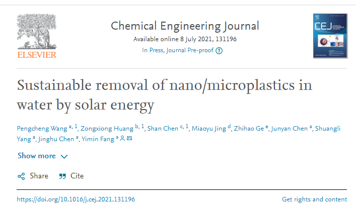 由于全球塑料產(chǎn)量逐年增加,且塑料降解速度慢和回收效率低等問題,大量的廢棄塑料在機(jī)械磨損和太陽光輻射等作用下分解成微塑料甚至納米塑料進(jìn)入水體,水中的微納塑料可通過食物鏈進(jìn)入人體。由于微塑料的攝入可引起生物體肝臟損傷、炎癥和代謝紊亂等問題,水中的微納塑料顆粒污染越來越受到科學(xué)界和公眾的關(guān)注。然而,目前用于去除水中塑料顆粒的方法(包括金屬離子絮凝、化學(xué)氧化、細(xì)菌降解和濾膜過濾等)效率低下、成本高,這限制了它們的應(yīng)用。