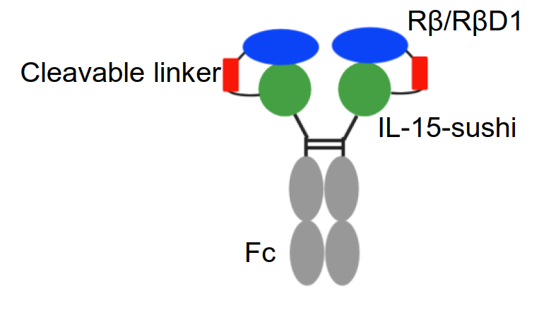 目前,大多數(shù)腫瘤免疫療法主要聚焦于阻斷免疫抑制信號或激活免疫刺激信號。然而,嚴重的治療相關(guān)毒性和非腫瘤靶向分布所導致的腫瘤控制不佳等問題限制了免疫治療的臨床應用。IL-2 是一種可擴增 T 細胞和 NK 細胞的多效細胞因子,是 FDA 最早批準應用于轉(zhuǎn)移性黑色素瘤和腎癌的免疫治療藥物之一。由于IL-2同時可以激活免疫抑制性調(diào)節(jié)T細胞(Regulatory T cells , Treg)、誘導效應T細胞死亡(Activation induced cell death, AICD)、刺激血管內(nèi)皮細胞,產(chǎn)生嚴重的毒副作用,一直未被廣泛應用于臨床。IL-15相較于IL-2在腫瘤治療方面具有以下優(yōu)勢:(1)IL-15可以避免活化誘導的細胞死亡,誘導較長壽命的記憶性T細胞的產(chǎn)生和穩(wěn)態(tài)增殖;(2)IL-15不會擴增Treg細胞。(3)IL-15沒有作用于血管內(nèi)皮細胞而引起系統(tǒng)性毒副作用。因此,IL-15是目前很有潛力的腫瘤免疫治療細胞因子。然而由于其受體在外周組織廣泛表達,IL-15注射給藥通常會引起毒副作用,限制腫瘤治療效果。基于IL-15的免疫調(diào)節(jié)活性,研究人員首次研究設計一種高效、低毒的抗腫瘤前體藥物,pro-IL-15。研究人員將IL-15Rβ的胞外域通過金屬基質(zhì)蛋白酶-14(該酶在腫瘤組織特異性高表達,在正常組織表達較低)的底物多肽連接到IL-15的N端,用來可逆性地封閉IL-15的活性。Pro-IL-15在外周處于封閉狀態(tài)從而避免活性釋放引起毒性;當藥物進入腫瘤組織,腫瘤中高表達的金屬基質(zhì)蛋白酶-14消化切割連接肽段,釋放出IL-15的活性,激活抗腫瘤免疫反應。