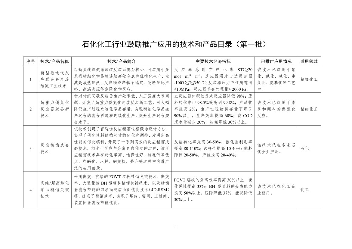 工業(yè)和信息化部印發(fā)石化化工行業(yè)鼓勵(lì)推廣應(yīng)用的技術(shù)和產(chǎn)品目錄(第一批)