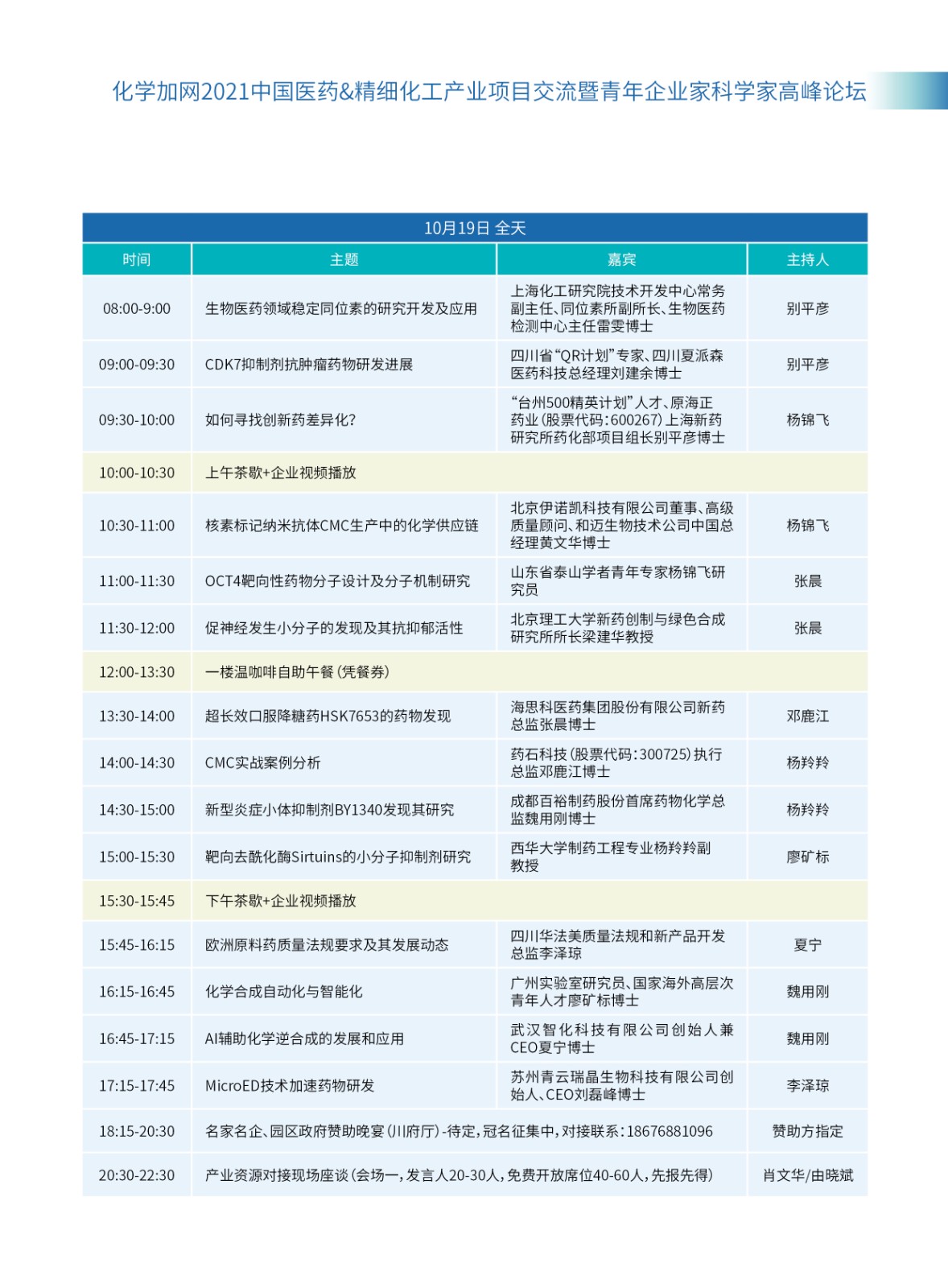 【下周一開幕】化學(xué)加網(wǎng)2021中國醫(yī)藥精細(xì)化工產(chǎn)業(yè)項(xiàng)目交流暨青年企業(yè)家科學(xué)家高峰論壇大會議程、分享嘉賓及合作單位一覽