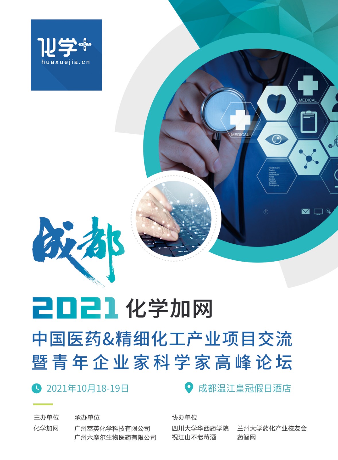 導(dǎo)讀:化學(xué)加網(wǎng)2021中國醫(yī)藥&精細(xì)化工產(chǎn)業(yè)項(xiàng)目交流暨青年企業(yè)家科學(xué)家高峰論壇將于10月18-19日在成都舉行,歡迎藥物研發(fā)/生產(chǎn)企業(yè),CRO/CMO/CDMO服務(wù)企業(yè),原料藥/中間體/精細(xì)化工企業(yè),實(shí)驗(yàn)室建設(shè)/運(yùn)營管理企業(yè),基金投行人士,及產(chǎn)業(yè)集群&功能定位明確的園區(qū)招商運(yùn)營方報(bào)名參會。
